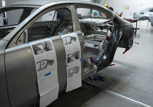 Pravidelně u nás organizujeme školení zaměřená na karosářské opravy, lakování a v posledních letech i na oblast elektromobility. Znalosti a dovednosti techniků se totiž musí neustále vyvíjet spolu s rychlým technologickým pokrokem. To platí zejména v segmentu automobilového průmyslu, kde nové modely přinášejí inovativní materiály, konstrukce a opravárenské postupy. A přesně proto jsme byli vhodným partnerem pro pořádání mezinárodního školení Mercedes-Benz, které se neslo v duchu sdílení zkušeností, rozšiřování praktických dovedností a posilování standardů v síti autorizovaných servisů. Hlavním cílem bylo zvýšení kvalifi kace účastníků a přenos posledních znalostí v oblasti oprav karoserií, a to prostřednictvím praktické práce přímo na karoseriích aktuálních modelů. Význam celé akce podtrhla široká mezinárodní účast.